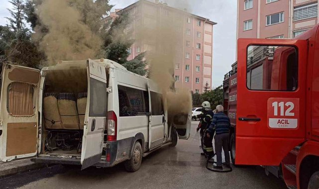 Burdur'da sigara izmaritinin koltuğa düşmesiyle yanmaya başlayan park halindeki minibüs, itfaiye ekiplerinin müdahalesi ile söndürüldü.