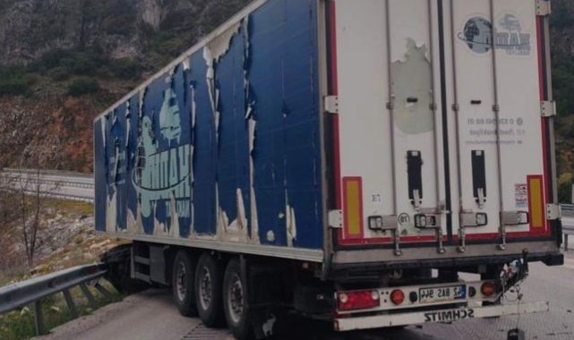 Burdur'da kontrolden çıkan tır demir bariyerlere çarptı