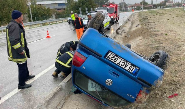 Burdur'da sürücüsünün direksiyon hakimiyetini kaybetmesi sonucu meydana gelen trafik kazasında otomobil devrilirken araçta sıkışan sürücü itfaiye ekipleri tarafından kurtarıldı.