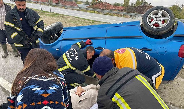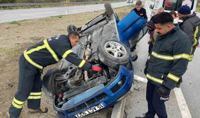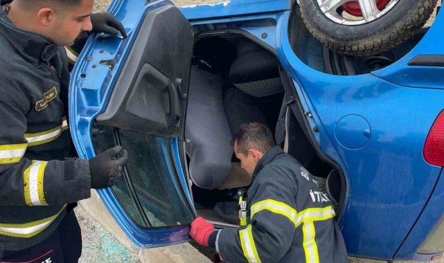 Burdur'da otomobil devrildi, sıkışan sürücüyü itfaiye kurtardı