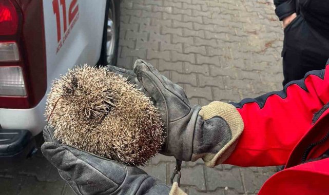 Burhaniye'de mazgala sıkışan kirpiyi itfaiye kurtardı