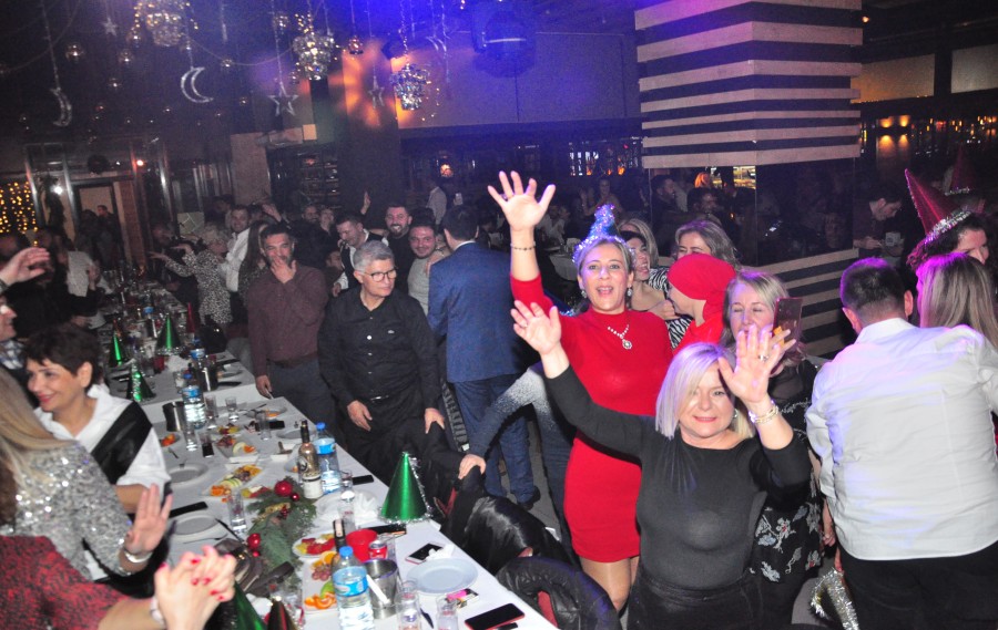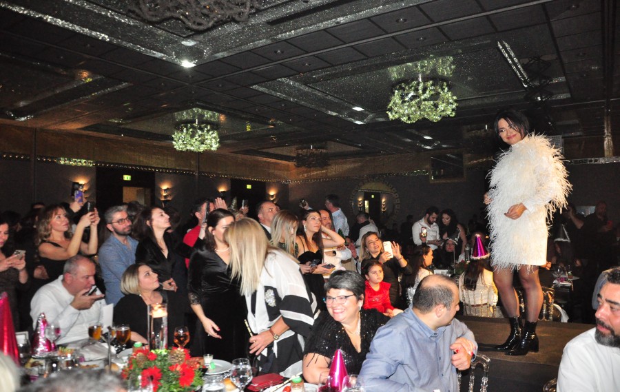 Petek Dinçöz'ün şarkılarına gerek oturdukları yerlerden gerekse masa kenarlarında eşlik eden konuklar renkli bir yılbaşı gecesi yaşadı.
