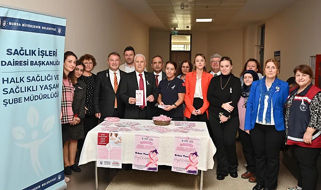 Bursa Büyükşehir Belediyesi tarafından ‘Meme Kanseri Farkındalık Ayı’ etkinlikleri kapsamında belediye personeline pembe kurdele ve bilgilendirme broşürü dağıtıldı. Başkan Mustafa Bozbey’in de katıldığı etkinlikte, erken teşhisin önemine dikkat çekildi.