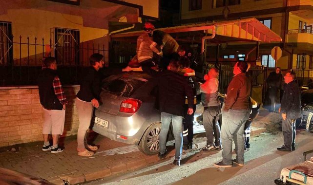 Kaza saat 22.00 sıralarında Kemalpaşa Mahallesi Hicran ile Emin sokağının kesiştiği kontrolsüz kavşakta meydana geldi. Hicran Sokak'tan seyreden Muharrem A. (37) idaresindeki 34 KHR 82 plakalı otomobil, Emin Sokak'ta seyreden Kadir A. (20) yönetimindeki 16 BIP 467 plakalı otomobile yandan çarptı. Çarpmanın etkisiyle savrulan 16 BIP 467 plakalı otomobil binanın bahçe duvarına çarparak durdu. Kaza sonucu sürücüler ile 34 KHR 82 plakalı otomobildeki yolcu Kübra A. (35) yaralandı. Araçta sıkışan sürücü Kadir A. olay yerine gelen itfaiye ekiplerince kurtarıldı. Yaralılar kaza yerine sevk edilen ambulanslarla İnegöl Devlet Hastanesine kaldırıldılar.