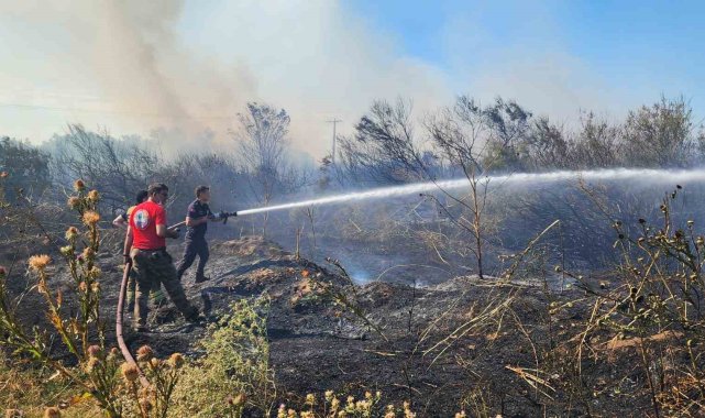 Bursa'da Mustafakemalpaşa ilçesinde bir besi çiftliğinde çıkan yangın 3 bölgeye daha sıçradı. Çiftlikte bulunan 300 büyükbaş hayvan bölgeden uzaklaştırılarak telef olmaktan son anda kurtarılırken, yangınlar itfaiye ekiplerinin müdahalesiyle kontrol altına alındı.Edinilen bilgiye göre, Fevzidede Mahallesi'nde bir besi çiftliğinde çıkan saman yangını, kısa sürede büyüyerek tüm çiftliği sardı. Çiftlikte bulunan 300 büyükbaş hayvan bölgeden uzaklaştırılarak telef olmaktan son anda kurtarılırken, alevler çiftliğin karşısında bulunan Bursa Büyükşehir Belediyesi'ne ait Atık Su Kanalizasyon İşletmesi'nin (BUSKİ) bahçesine de sıçradı. Yangına çok sayıda itfaiye ekibi ve Bursa Büyükşehir Belediyesi'ne bağlı söndürme araçları müdahale etti. Ayrıca Mustafakemalpaşa Belediyesi'ne ait söndürme ekipleri de olay yerine sevk edildi.Ççiftlikteki yangını söndürme çalışmaları devam ederken, alevler yaklaşık 200 metre mesafede bulunan Millet Bahçesi'ne sirayet etti. Bahçenin arka cephesinde çıkan yangın, rüzgarın da etkisiyle Millet Bahçesi'nin karşısında bulunan alana da sıçradı.Mustafakemalpaşa Orman İşletmesi, ilçe itfaiyesi, PAŞAKUT ve destek ekiplerinin yanı sıra Karacabey'den gönderilen çevik kuvvet birimlerine bağlı bir adet TOMA da söndürme çalışmalarına destek verdi.Yangınların kontrol altına alınmasının ardından, özel besi çiftliği tamamen kül olurken, Millet Bahçesi ve çevresindeki yeşil alanlar da büyük hasar gördü.AK Parti İlçe Başkanı Mutlu Turgut, Cumhuriyet Halk Partisi İlçe Başkanı Gökhan Demir ve Milliyetçi Hareket Partisi İlçe Başkanı Suat Buldu olay yerine gelerek yetkililerden bilgi aldı. Yangınla mücadele eden ekiplere hortum çekme konusunda yardımcı olan siyasi heyet, zaman zaman alevlerin sıçradığı alanlarda birebir çalışma yürüttü.Yetkililer, yangınların çıkış nedenine ilişkin soruşturmanın sürdüğünü belirtti.