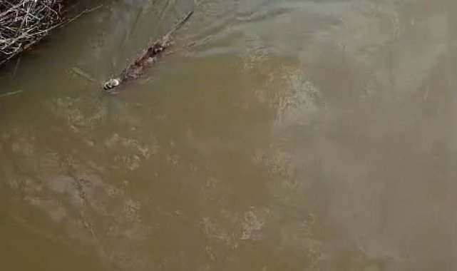 Bursa'nın Karacabey ilçesine bağlı Akçasusurluk mevkiinde bulunan derede su samuru görüntülendi.