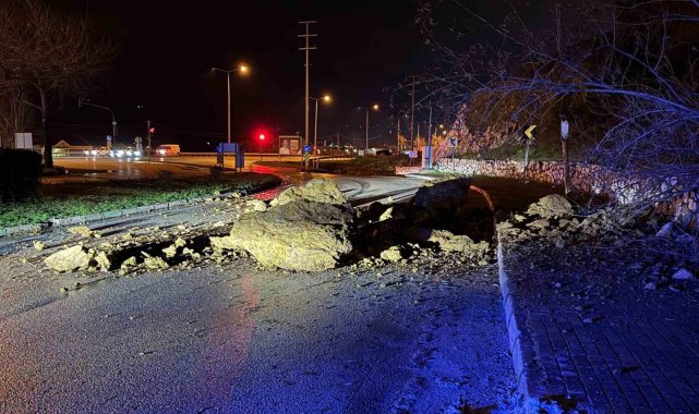 Bursa'nın Kestel ilçesinde meydana gelen heyelan, yolu trafiğe kapattı.Bursa'nın Kestel ilçesi Kale Mahallesi Kurtuluş Caddesi üzerindeki yamaçtan kopan kaya parçaları yolu kapattı. Kestel İlçe Emniyet Müdürlüğü ekipleri, heyelanı güvenlik kameralarından fark etti. Gecenin ilerleyen saatleri olması sebebiyle, araç yoğunluğunun az olması büyük faciayı önledi. Olay yerinde geniş güvenlik önlemi alan polis ekipleri, yolu araç trafiğine kapattı.Yola düşen devasa kaya parçaları ve toprak birikintileri sebebiyle kapatılan caddeden geçmek isteyen sürücüler, alternatif yollara yönlendirildi. Olay yerine gelen iş makinelerinin düşen kayaları kaldırmasının ardından, yol tek taraflı olarak trafiğe açıldı.