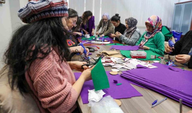 Bursa Büyükşehir Belediyesi'nin 8 Mart Dünya Emekçi Kadınlar Günü etkinlikleri kapsamında Bursa Kent Konseyi tarafından düzenlenen keçe atölyesine katılan kadınlar, el emekleri ile çeşitli süs eşyaları hazırladı.Bursa Kent Konseyi Kadın Meclisi'nde gerçekleştirilen atölye çalışmasında, keçe kumaşlar, renkli iplikler, düğmeler ve süsleme malzemeleri kullanılarak birbirinden renkli ürünler hazırlandı. Kadınların dayanışma ve ortak üretim gücünü bir kez daha ortaya koyan ürünler, 8 Mart Pazar günü yapılacak yürüyüşte kullanılacak.Kadın mücadelesinin simgeleriyle zenginleştirilen çalışmalarda katılımcılar hem kendi tasarımlarını oluşturdu hem de fikir alışverişinde bulunarak kolektif üretim deneyimi yaşadı. Keyifli vakit geçiren ve ortak bir amaç doğrultusunda üretmenin mutluluğunu paylaşan kadınlar, düzenlenen etkinlik dolayısıyla Bursa Büyükşehir Belediyesi'ne ve Bursa Kent Konseyi'ne teşekkür etti.