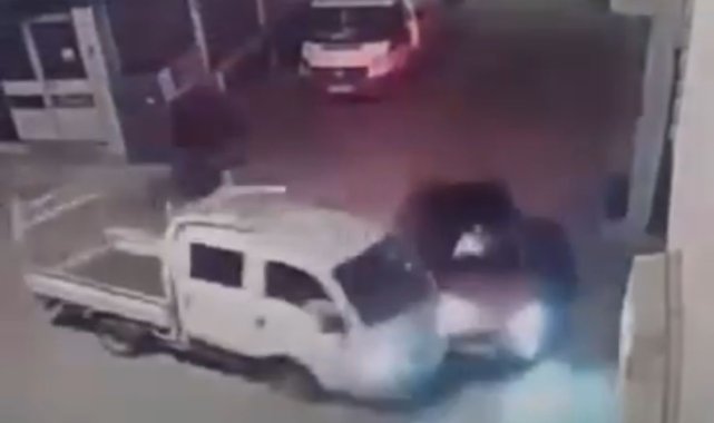 Bursa'da otomobiliyle ilerleyen sürücü yolun kesiştiği yerde önce seyir halindeki kamyonete ardından duvara çarptı. O anlar güvenlik kamerasına yansırken, otomobil sürücüsü ise yaralandı.Kaza, merkez Yıldırım ilçesi Hacivat Mahallesi üzerinde meydana geldi. Bir otomobil sürücüsü hızla seyir halindeyken, yol ağzına geldiğinde yavaşlamadı. Hızla ilerleyen araç önce seyir halindeki kamyonete, sonra duvara çarparak durabildi. Kazayı gören çevredekiler hemen yardıma koşarken, olay yerine sağlık ekibi sevk edildi. Sağlık ekiplerince tedavisi ambulansta yapılan sürücünün hafif yaralanırken, kaza anı ise güvenlik kamerasına anbean yansıdı.