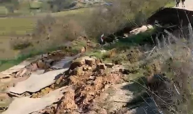 Bursa'da meydana gelen heyelan yolu parçalara ayırdı