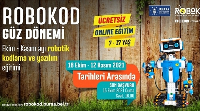Bursa Büyükşehir Belediyesi'nin çocukların bilim ve teknolojiyi sevmeleri maksadıyla başlattığı 'Robokod Robotik Yazılım ve Kodlama online güz dönemi eğitimleri 18 Ekimde başlıyor.