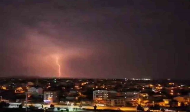 Bursa'nın Karacabey ilçesinde akşam saatlerinde art arda çakan şimşekler geceyi adeta gündüze çevirdi.