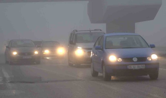 Bursa'da sabah saatlerinden itibaren etkisini gösteren yoğun sis hayatı olumsuz etkiledi. Görüş mesafesi 10 metreye kadar düşerken, araçlar trafikte ilerlemekte zorluk çekti.