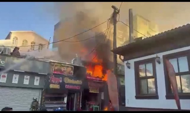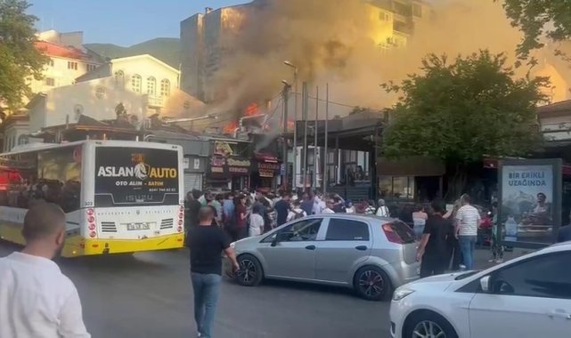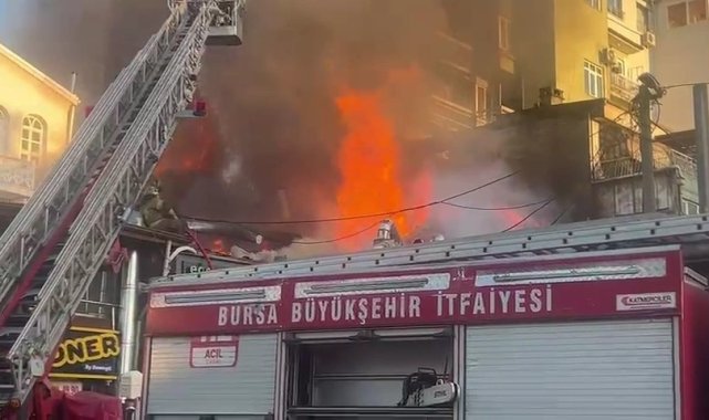 Bursa'da tarihi Setbaşı semtindeki bir dönercide çıkan yangın yan dükkana sıçradı. Ekiplerin yangına müdahalesi sürüyor.