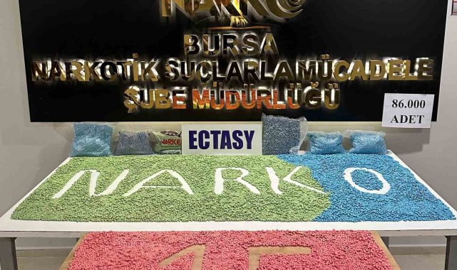 Bursa'da narkotik polisinin gerçekleştirdiği iki ayrı operasyonda 86 bin ecstasy hap ve 14 kilogram metamfetamin ele geçirildi. Narkotik köpeği Lizz'in de katıldığı operasyonda ele geçen uyuşturucular sayesinde binlerce genç zehirlenmekten kurtarıldı. Operasyonda gözaltına alınan 4 kişi tutuklandı