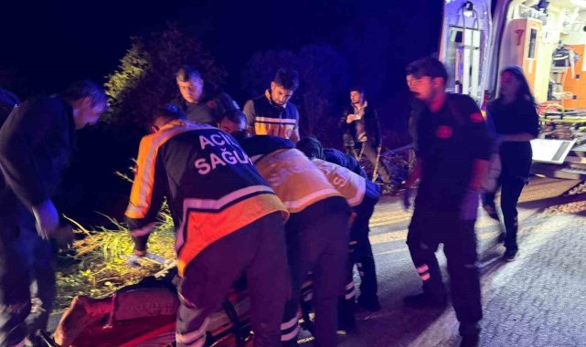 Bursa'da tırın şarampole yuvarlandığı kazada 2 kişi yaralandı.