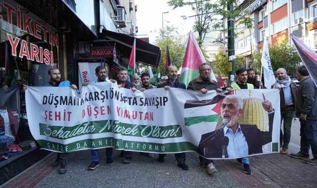 Bursa'da Gazze Dayanışma Platformu üyeleri, İsrail'in saldırısında hayatını kaybeden Hamas Siyasi Büro Başkanı Yahya Sinvar ve Filistin'de hayatını kaybedenler için önce yürüdü ardından gıyabi cenaze namazı kıldı.