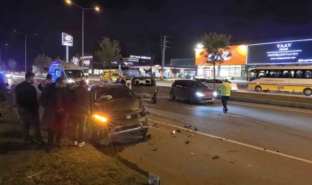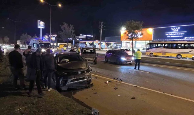 Bursa'nın İnegöl ilçesinde meydana gelen zincirleme kazada 1'i ticari araç ile 2 otomobilin çarpışması sonucu 3 kişi yaralandı.