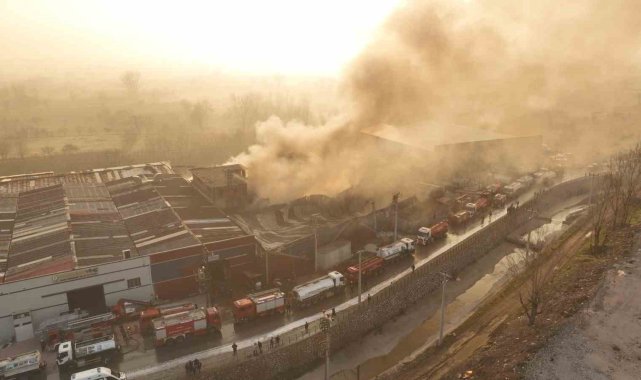 Bursa'da sabahın ilk saatlerinde geri dönüşüm fabrikasında başlayan yangın, tekstil fabrikasına da sıçradı. Alevlere teslim olan 2 fabrikayı söndürmek için, merkez 3 ilçedeki itfaiyeler seferber oldu. 20'den fazla itfaiye ekibinin 2 saati aşan çalışmasıyla alevler söndürülürken, yangının çarpıcı görüntüleri dron ile kaydedildi.Yangın, saat 06.30 sıralarında merkez Yıldırım ilçesi Vakıfköy Mahallesindeki geri dönüşüm fabrikasında başladı. Çalışanların kendi imkanlarıyla müdahalesine rağmen, alevler kısa sürede büyüdü. Yan tarafta bulunan tekstil fabrikasına da sıçrayan alevler, korku dolu anlara sebep oldu. 2 fabrika çalışanlarının söndürmeye çalıştığı alevlere, Bursa Büyükşehir Belediyesi İtfaiye Daire Başkanlığı ekipleri de çok sayıda araç ve personelle müdahale etti. Alevler kısa sürede kontrol altına alınırken, Yıldırım, Nilüfer ve Osmangazi Belediyesine ait su tankerleri de hazır bulundu.Soğutma çalışması için ekiplerin hummalı çalışması devam ediyor.