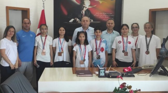 Bursa'da Gemlik Kaymakamı Hasan Göç, ulusal derecede başarı elde eden sporcuları ödüllendirdi.Tarık ŞEKER / BURSA (İGFA) - 2023 yılında Ulusal çapta derece elde eden Gemlik Gençlik ve Spor ilçe müdürlüğüne bağlı sporcu ve antrenörler Gemlik Kaymakamı Hasan Göç tarafından kabul edildi.Gemlik Kaymakamı Hasan Göç; antrenörler Aylin Özen Gani ve İsmail Yıldız'a başarı belgelerini, ulusal başarı elde eden Eda Naz Topalsalihoğlu, Yağmur Kırdar, Ayşe Nur Boşküp, İrem Naz Gül, Muhammet Barkan Yıldız, Rabia Gül Akan, Muhammed Ali Şeker, Deniz Köken'e de hediye çeklerini vererek elde etti.Kabulde Gemlik İlçe Gençlik ve Spor Müdürü Berkant Atasoy da hazır bulundu2023 Yılında Ulusal başarı elde eden Sporcu isimleri şöyle:1-Eda Naz TOPALSALİHOĞLU