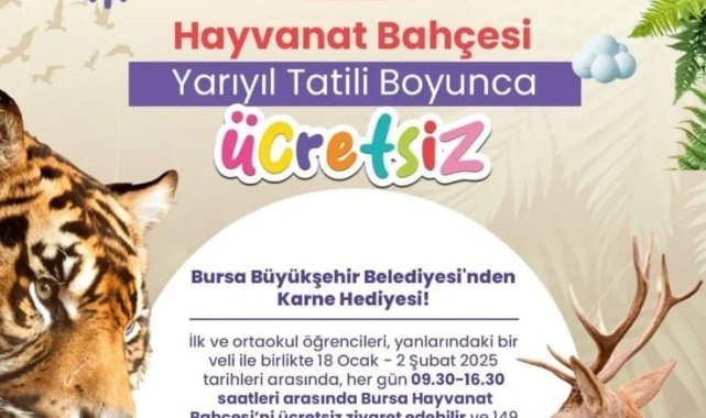 Bursa Büyükşehir Belediyesi, öğrencilere karne hediyesi olarak Hayvanat Bahçesi'nin ücretsiz olduğunu duyurdu.