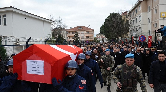 Bursa'nın Yenişehir ilçesindeki baba ocağına getirilen şehit Yüzbaşı Yunus Bal'ın Türk bayrağına sarılı tabutu, ardından Yusuf Ateş Anadolu İmam Hatip Lisesi'nin bahçesine götürüldü.