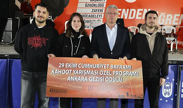 Yarışmada ilk 3'e giren Mehmet Onur Poyrazoğlu, Yiğit İnal ve Melike Duman kazandıkları Anıtkabir gezisi ödülünü Belediye Başkanı Deniz Dalgıç'ın elinden aldı.