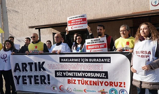 Bursa'da aile hekimi, hemşire ve sağlık çalışanları, artan iş yükü, güvencesiz istihdam ve performansa dayalı ücret uygulamalarına karşı Yıldırım'da Ulus Aile Sağlığı Merkezi önünde bir araya geldi. Çalışanlar, haklarının korunması ve nitelikli sağlık hizmeti için yetkililere çağrıda bulundu.