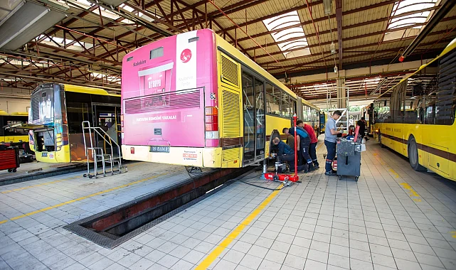 Otobüs Bakım Müdürü Enes Başol ise 546 araçlık filonun yaklaşık yüzde 25'ine günlük bakım ve onarım hizmeti sağlandığını ifade etti. Başol, "Atölyelerimizde motor, şanzıman, diferansiyel gibi ana bileşenlerin yanı sıra fren sistemleri, elektrik-elektronik sistemler ve hidrolik-pnömatik sistemlerin onarımlarını öz kaynaklarımızla gerçekleştiriyoruz" diye konuştu.