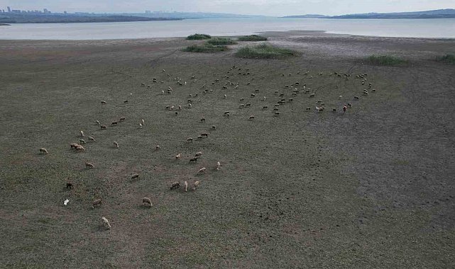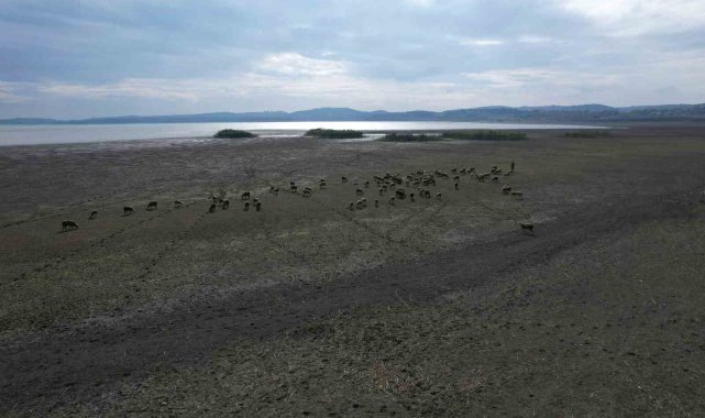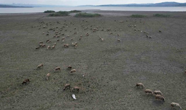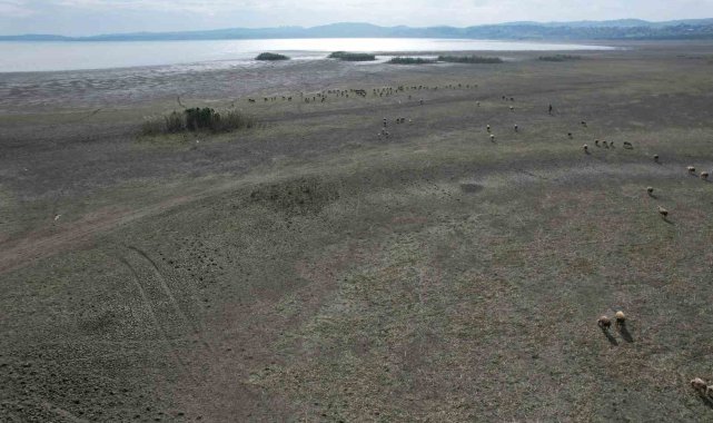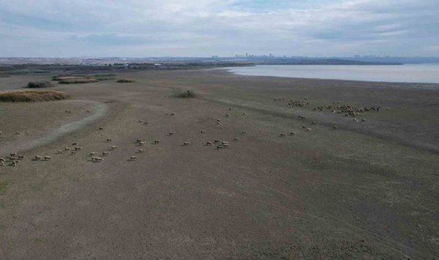 Büyükçekmece'de gölün büyük kısmı kurudu, koyunlar otlamaya başladı