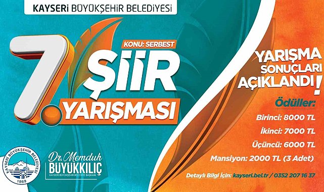 Kayseri Büyükşehir Belediyesi'nin geleneksel hale getirdiği 7'nci şiir yarışması sonuçlanırken, yarışmaya ülkenin dört bir tarafından 1200 kişi katıldı.