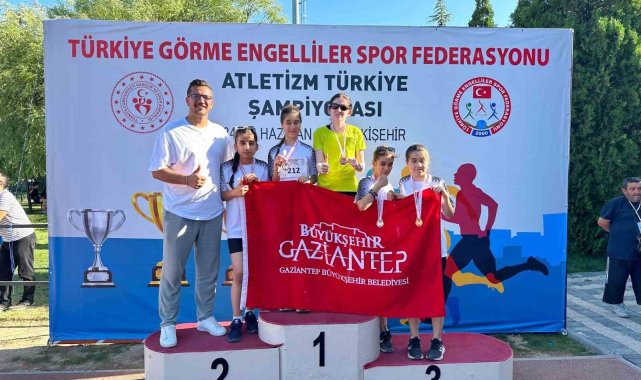 Gaziantep Büyükşehir Belediye Spor Kulübü sporcuları, Türkiye Atletizm Şampiyonasında büyük başarıya imza attı.Türkiye Görme Engelliler Spor Federasyonu tarafından Eskişehir'de düzenlenen şampiyonada Büyükşehir Belediye Spor Kulübü sporcuları toplamda 5 altın, 4 gümüş ve 1 bronz madalya sahibi oldu.T12 13-15 yaş kategorisinde Sevgisu Özel 100 metrede 16.17 saniyede , 200 metrede 33.20 ile birinci olurken Melike Can, 100 metrede 17.83 - 200 metrede 35.98 ikinci oldu.T11 16-19 yaş kategorisinde Nurten Gamze Katırcı ise 100 metrede 18.76 üçüncü 200 metrede 40.90 ile ikinci olurken Saniye Gaye Katırcı 100 metrede 17.67 ile ikinci 400 metrede 1.23 ile birinci oldu.Son olarak T12 Büyük Kadınlar Kategorisinde Sevda Kılınçoğlu 200 metrede 27.75, 400 metrede 59.81 ile birinci oldu.
