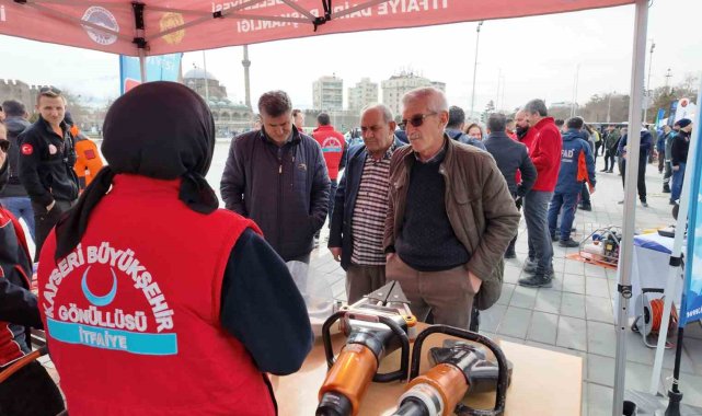 Kayseri Büyükşehir Belediyesi, 1-7 Mart Deprem Haftası kapsamında Cumhuriyet Meydanı'nda stant açarak vatandaşlara afet bilinci kazandırmaya yönelik bilgilendirme çalışmaları gerçekleştirdi.
