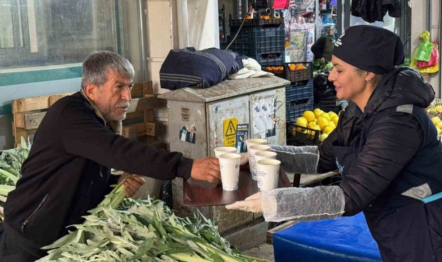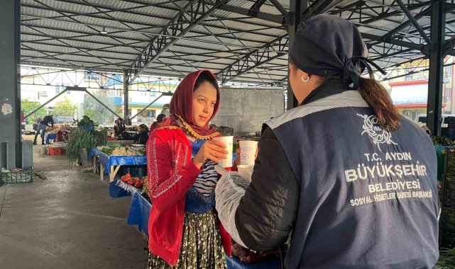 Aydın Büyükşehir Belediyesi'nin sıcak çorba ikramı bugün de 4 ilçe ve 11 farklı noktada on binden fazla pazarcı esnafı ve vatandaşa ulaştırıldı.