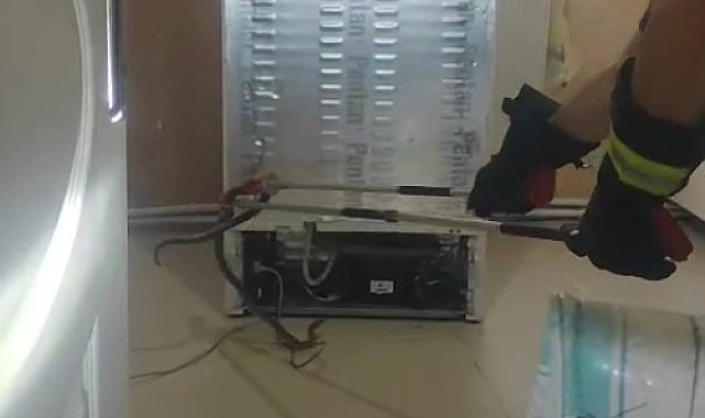 Buzdolabı motoruna giren yılanı itfaiye çıkardı