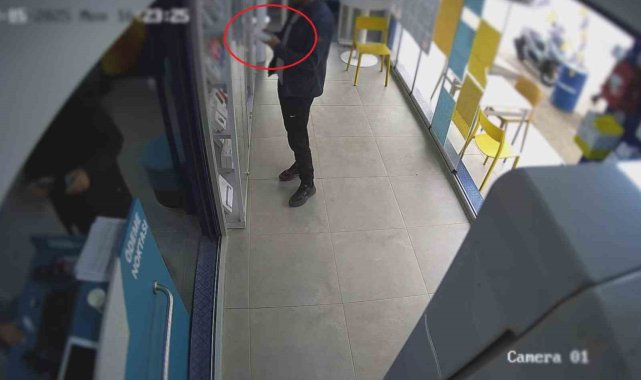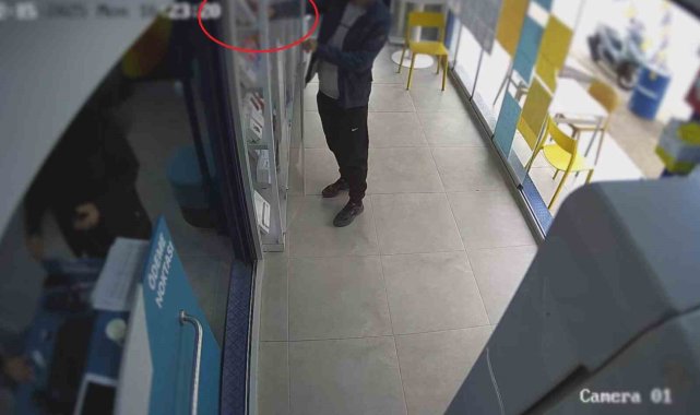 Hatay'da bir iş yerine girip kaşla göz arasında camekandaki telefonu çalan hırsızın çalma anı güvenlik kamerasına yansıdı. İş yerindeki kameraların incelenmesinin ardından yakalanan hırsız M.B., mahkemece tutuklandı.Olay, 15 Aralık günü Kırıkhan ilçesi Mimar Sinan Mahallesi'nde yaşandı. Mahallede bulunan bir iş yerine müşteri gibi gelen M.B., camekanda bulunan cep telefonunu çaldı. Telefonu çalan M.B., iş yerinde dolaştıktan sonra olay yerinden uzaklaştı. Telefonun çalındığını anlayan iş yeri sahibinin 112 Acil Çağrı Merkezi'ne bildirmesi üzerine olay yerine polis ekipleri sevk edildi. Hatay Emniyet Müdürlüğüne bağlı polis ekipleri, iş yerindeki kameraları incelemenin ardından telefonu çalan şahsı tespit ederek gözaltına alındı. M.B., sevk edildiği adli makamlarca tutuklanarak cezaevine teslim edildi.