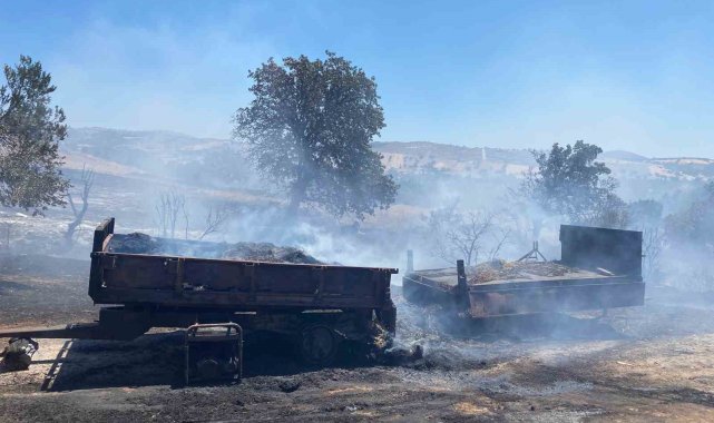 Çanakkale'de makilik alanda çıkan yangında ahır, ağıl ve traktör römorkları yandı