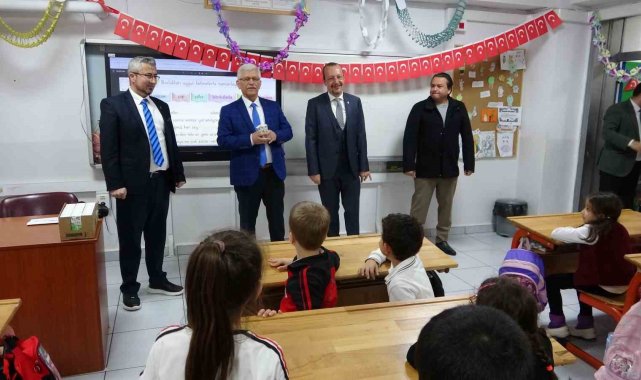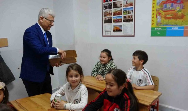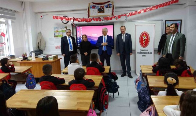 Türk Veteriner Hekimleri Birliği Merkez Konseyi Başkanı Ali Eroğlu, Veterinerler Günü etkinlikleri çerçevesinde Çanakkale'de ilkokul öğrencilerine süt dağıttı.