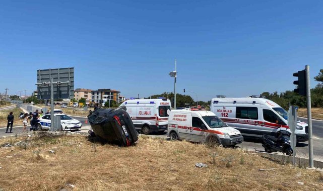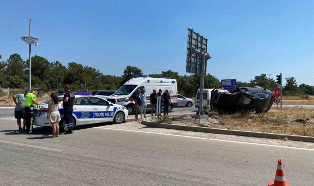 Çanakkale'de otomobil motosiklete çarpıp takla attı: 1'i ağır 2 yaralı