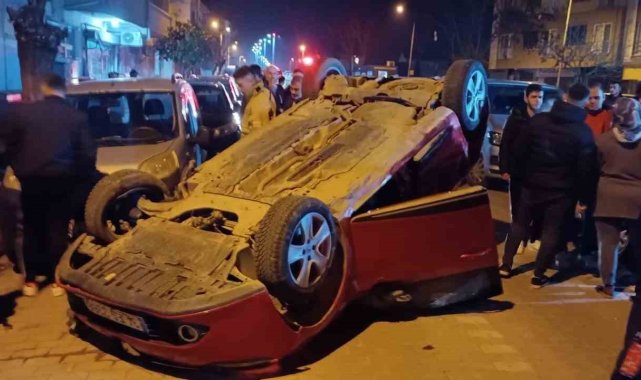 Çanakkale'nin Çan ilçesinde park halindeki araca çarparak takla atan otomobilin sürücüsü yaralandı.