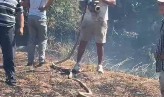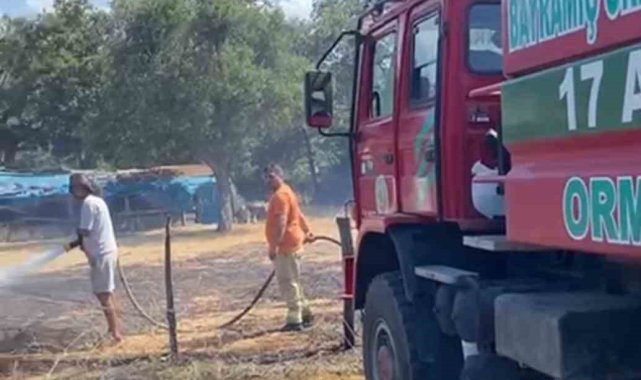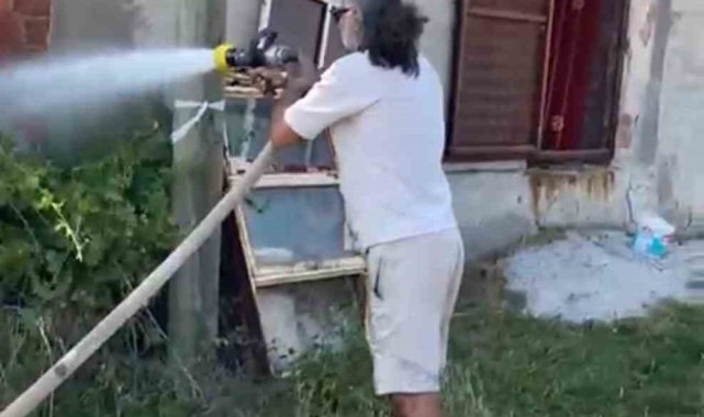 Çanakkale'de bir evin bahçesinde çıkan yangını söndürme çalışmalarına ünlü oyuncu Kenan Çoban da destek verdi.