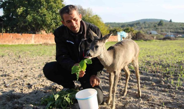 Çanakkale'de yangından kaçan karaca köyün maskotu oldu
