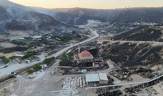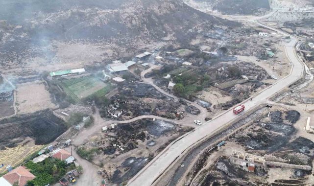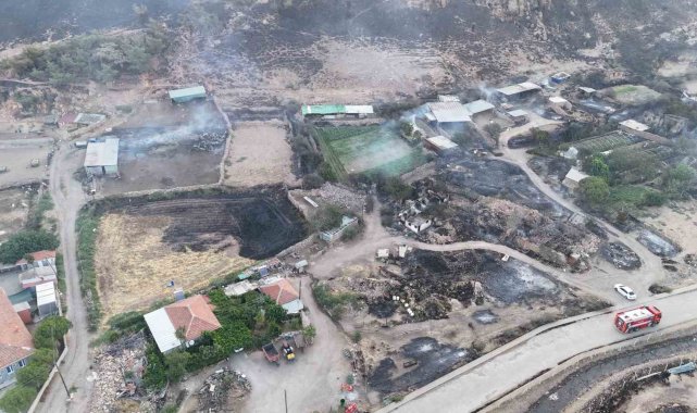 Çanakkale'nin Ayvacık ilçesinde çıkan orman yangını 17'nci saatinde devam ediyor. Yangına havadan ve karadan müdahale ediliyor. Yangında yanan ormanlık alanlar ile yerleşim yerleri dron ile görüntülendi.Ayvacık ilçesi Naldöken köyü mevkiinde dün saat 15.00 sıralarında başlayan orman yangını rüzgarın da etkisiyle yerleşim yerlerine sıçardı. Yangına dün havadan 4 uçak, 6 helikopter ile müdahale edildi. Havanın kararmasıyla birlikte orman yangınına karadan 42 arazöz, 15 itfaiye aracı, 6 dozer ve 300 personel ile müdahaleye devam edildi. Sabahın ilk ışıklarıyla beraber havadan 2 helikopter, karadan çok sayıda arazöz ve orman personeliyle yangına 17'nci saatinde müdahaleye devam ediliyor. Yangında oluşan can güvenliği riski sebebiyle dün tahliye edilen Naldöken, Tuzla, Taşağıl ve Çamköyündeki vatandaşlarla evlerine dönmeye başladı.Ayvacık ilçesinde bağlı Tuzla köyünde yaşayan yaşlı bir kişi kadının tahliyesine jandarma ekipleri yardım etti. Ekipler yürüyemeyen yaşlı kadını omuzlarına alarak evden çıkardı. Öte yandan Tuzla köyündeki birçok dam, bahçe, metruk bina, tarım aletleri, traktör ve tarım arazileri zarar gördü. Bazı hayvan damlarındaki küçükbaş hayvanlar telef oldu. Tuzla köyünde bulunan 1'inci Murat tarafından 659 yıl önce yaptırılan ve restorasyon aşamasındaki Murad Hüdavendigar Camisi'nin bahçesinde bulanan tarihi mezarlar da alevlerden etkilendi.Yangında yanan ormanlık alanlar ile yerleşim yerleri dron ile görüntülendi.