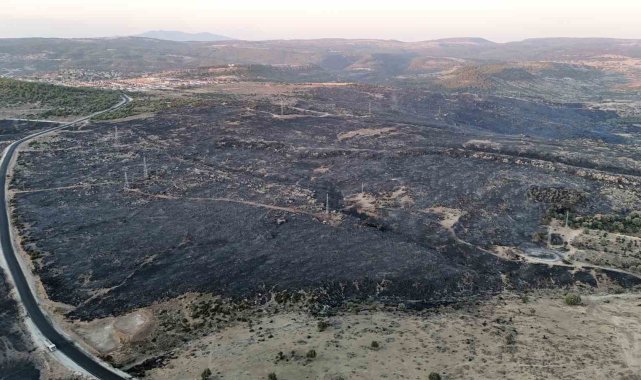 Çanakkale'deki orman yangınında yanan alanlar havadan görüntülendi