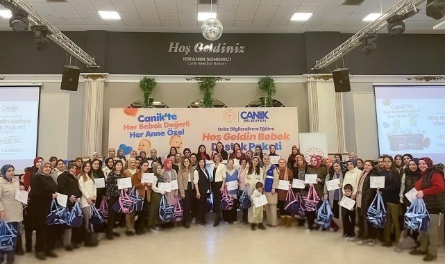 Samsun'un Canik Belediyesi ilçedeki anne adaylarına 'Bebek Destek Paketi' hediye etti.