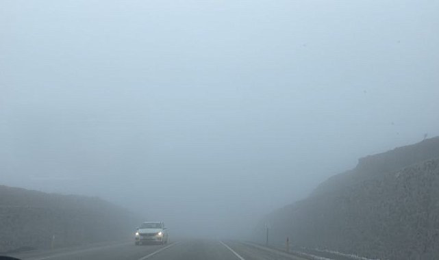 Çankırı'da etkili olan yoğun sis yüksek rakımlı bölgelerde görüş mesafesini 20 metreye kadar düşürdü.