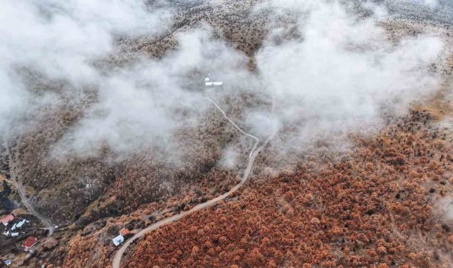 Çankırı'da sis ve kızıla bürünen ormanların buluşması mest etti