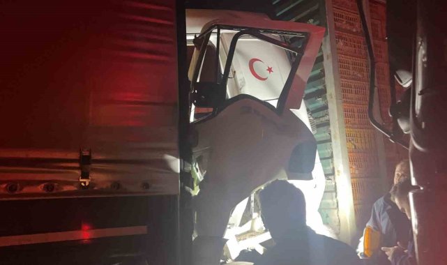 Canlı tavuk yüklü tır başka bir tıra arkadan çarptı: Kabinde sıkışan sürücüyü itfaiye kurtardı