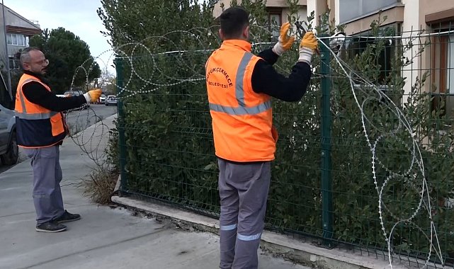 Büyükçekmece ilçe sınırlarında bahçe duvarlarında kullanılan kedi, köpek, kuş gibi canlılara zarar veren jiletli, kesici tel ve çitler belediye ekipleri tarafından kaldırılıyor.