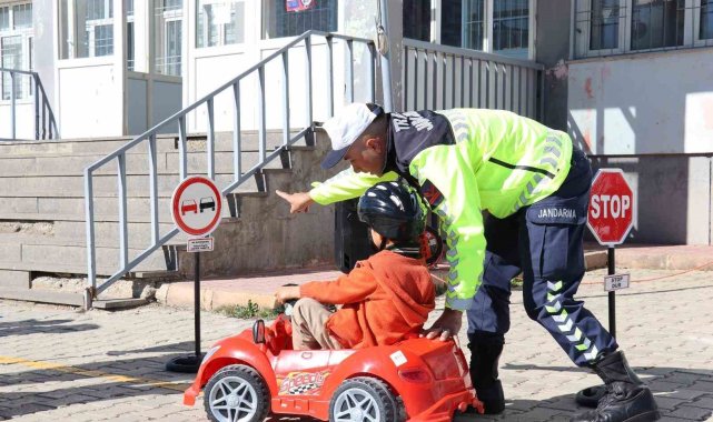 Van İl Jandarma Komutanlığı Trafik Şube Müdürlüğü ve Çatak İlçe Jandarma Komutanlığı ekipleri tarafından Kayaboğaz İlkokulu öğrencilerine uygulamalı trafik eğitimi verildi.
